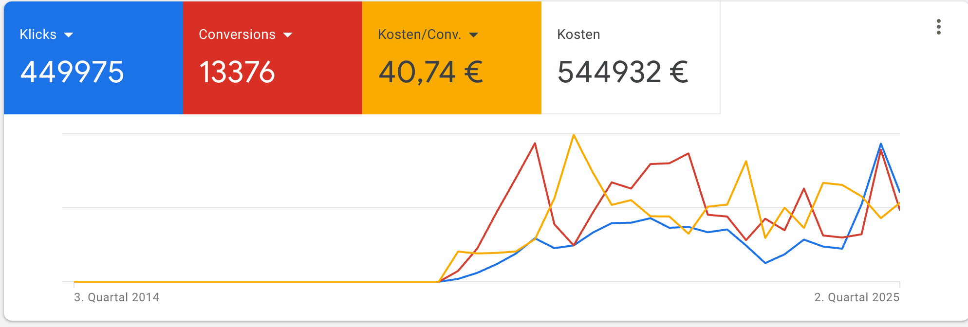 eigenes Unternehmen: Wir haben bisher weit über 1 Mio in bezahlte Werbeanzeigen gesteckt, sämtliche Strategien getestet, iteriert und uns innerhalb von nur 2 Jahren zum absoluten Marktführer in unserem Bereich etabliert. Von Anfang haben wir unsere Marke über bezahlte Werbeanzeigen vor allem über Google, YouTube und Meta erfolgreich etabliert.